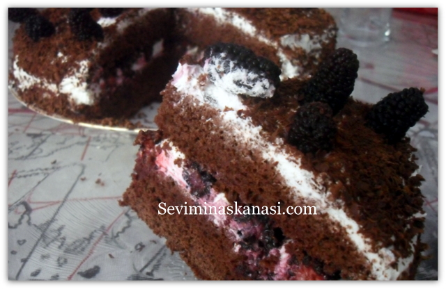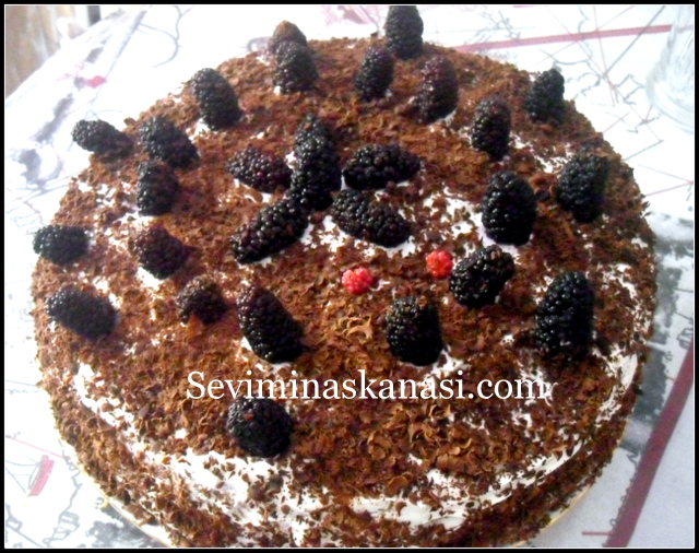 Pasta süslemek konusunda biraz yeteneksiz olsam da tadının harika olduğunu vurgulamadan geçemeyeceğim , karadut mevsimi de olduğundan Karaorman Pastası Karadut ile yaptım, dilerseniz siz vişneli , çilekli yada frambuazlı yapabilirsiniz. Yada bildiğiniz uygun meyve çeşitleri de olabilir. Ama kekinin çok lezzetli olduğunu vurgulamadan geçemeyeceğim , mutlaka deneyin.